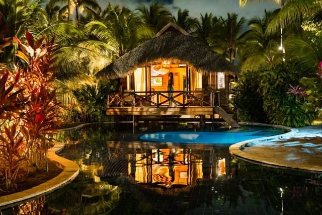 An exclusive resort set amidst Atlantic rainforest, featuring a spa with indigenous treatments, private bungalows, and pristine beaches.