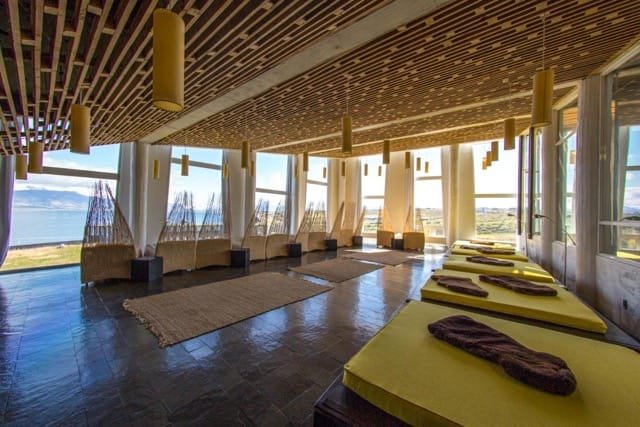 Offers a spa with various treatments, an indoor pool, and stunning views of the Paine Massif.